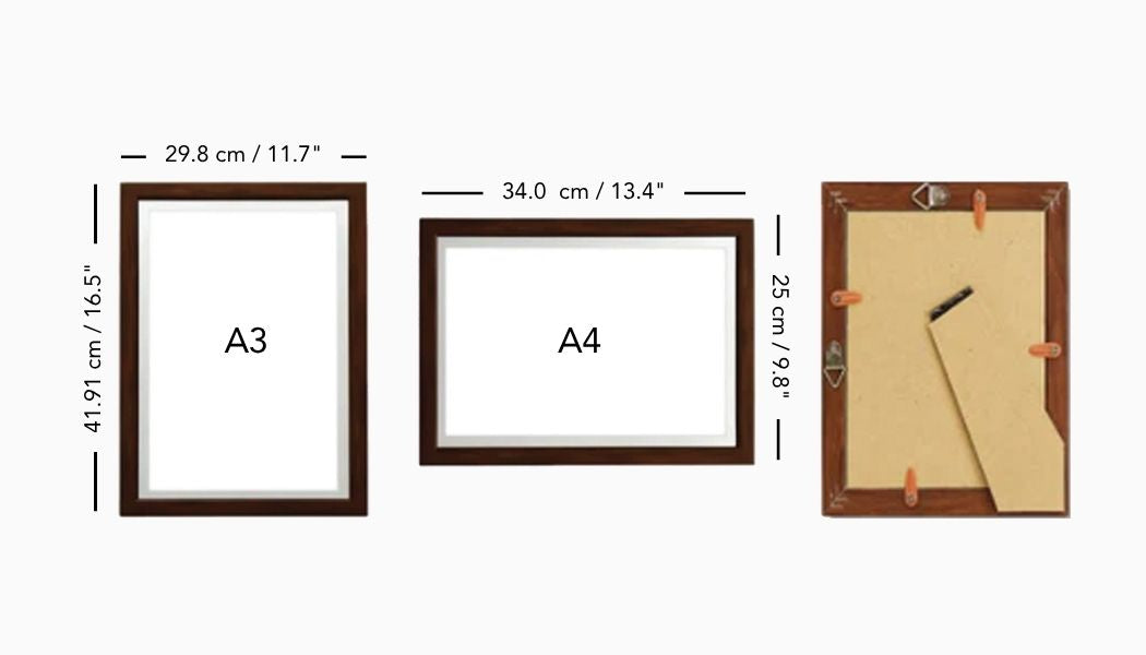The paper frame offers a lightweight, clean display, while the wood frame provides a polished, durable look. Both options are tailored for easy display in standard A4 and A3 sizes, making your art stand out beautifully in any space.